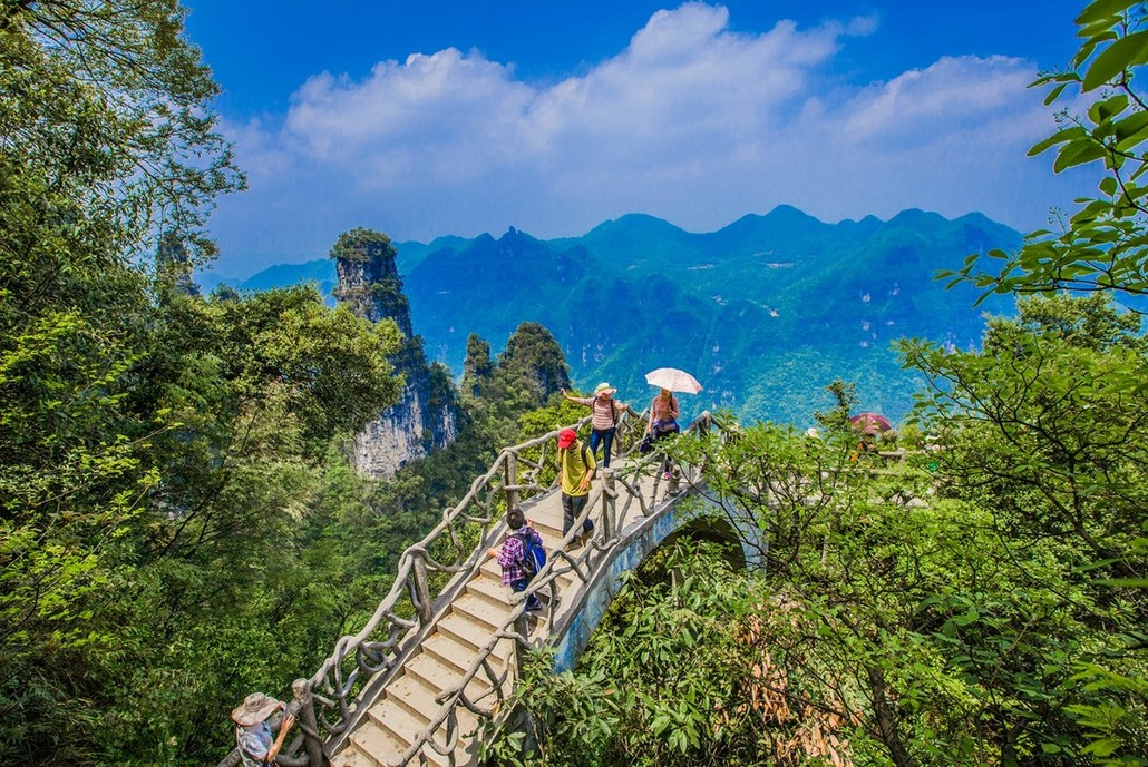 柴埠溪大峡谷游玩乘坐亚洲最陡缆车至大湾口景区游玩:青云梯、落月桥、对嘴石、女儿洞、被称为柴埠溪绝境的圣水观音,游玩结束后返程回武汉