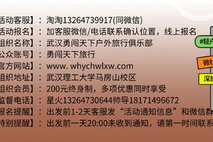 1、户外旅行具有一定危险,为此活动中如出现任何人身伤害等未料事件均为报名参与者个人负责,活动召集人不负任何法律责任,点击报名即视同签署了风险承担与权利放弃的协议,望报名者视自身情况慎重报名。